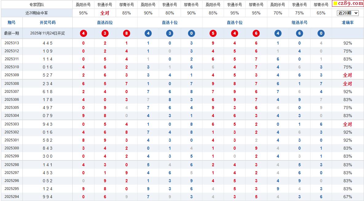 25年314期彩宝贝专家体彩P3杀号定码图表
